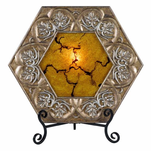 Requires 25W bulb not included Lighted charger plate with reversed painted glass Silver gold finish Height 175 in Base 16 in Finish SilverGold - Glass Reversed Painted